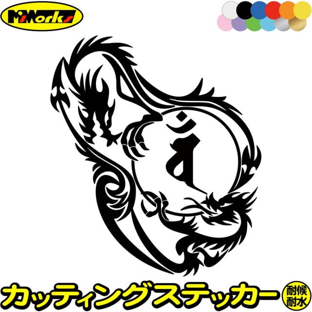 ドラゴン 梵字 ステッカー 干支梵字 バン 大日如来 未 申 ひつじ さる ドラゴン dragon 龍 左 12L サイズL カッティングステッカー 全12色 車 かっこいい おしゃれ バイク ステッカー 防水 耐水 アウトドア デカール 転写シール 210mmX184mm