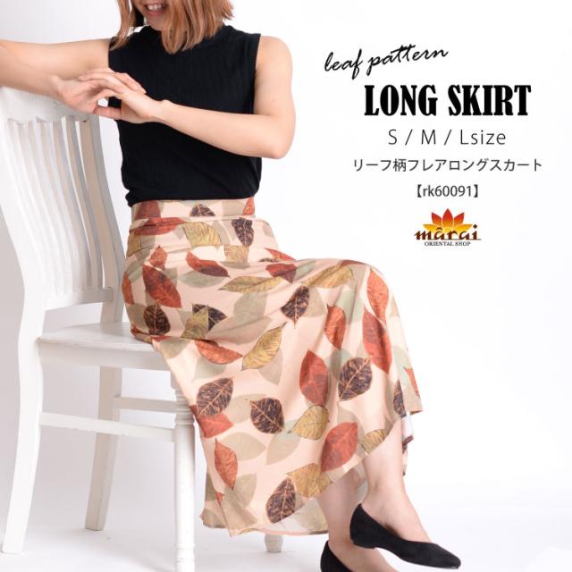 ロングスカート レディース 柄 スカート ロング丈 フレアロングスカート Aラインスカート ファスナー付き アジアン rk60091 [SALE] [値下]