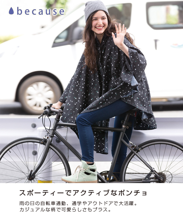 【収納袋付】because レインポンチョ BE-75015【RA-23】レインウェア because ビコーズ