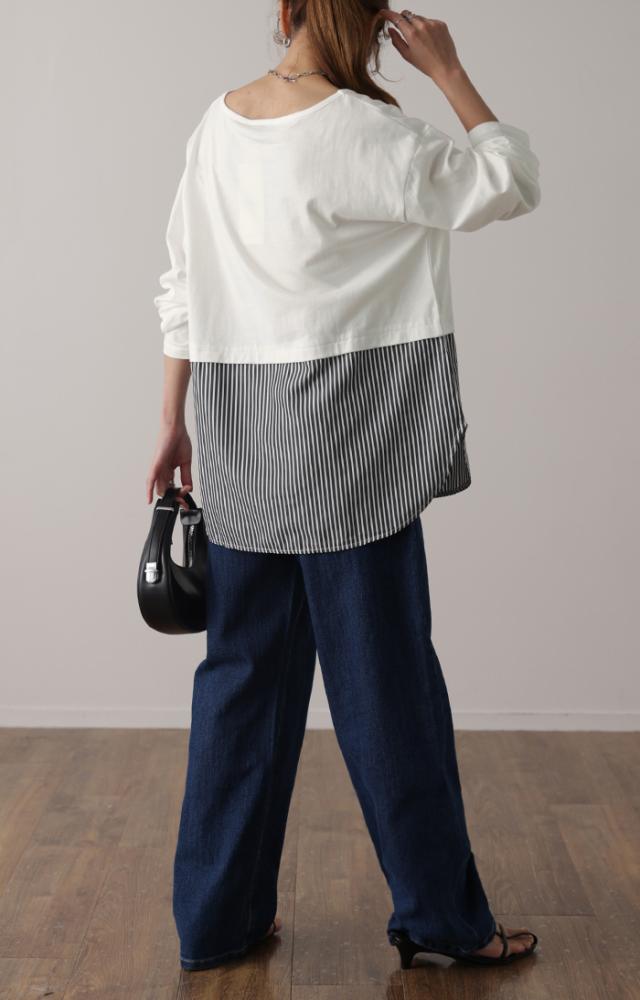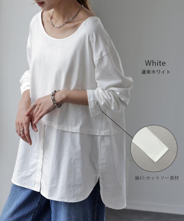 裾がシャツの切り替えになったカットソー。