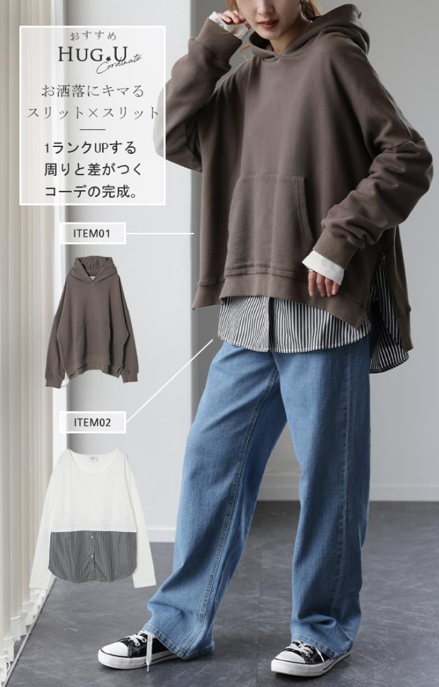 フェイクレイヤード ベーシックインナー カジュアル 微起毛 無地 シンプル 付け裾 裾出し 重ね着風 ロング ロンティ ロンティー レイヤードTシャツ ストライプシャツ レイヤードシャツ レイヤードトップス レイヤードカットソー スリット スリット入り 切り替え 袖切り替え ドッキング ドッキングカットソー ドッキングシャツ 重ね着 重ね レイヤードコーデ 長袖トップス ゆる ゆるT ロングTシャツ つけ裾 白T 無地T ボートネック ベーシック ラウンド ラウンドT ラウンドTシャツ ミドル丈 ラウンドティーシャツ ティーシャツ コットン ナチュラル 着回し シンプル ロングスリーブ シャツ袖 カフス カフスボタン 袖 見せインナー Uネック ボートネック ドロップショルダー 二の腕 二の腕カバー 落ち感 こなれ感 華奢 切り替え袖 ラウンド裾 ラウンド裾カットソー ラウンドT 透けない さらさら しっとり 袖あり クルーネック 首元広め U字ネック Uネック 丸首 ミディアム ミドル ロング丈 ボックスティーシャツ ティーシャツ トレンド 旬 二の腕隠し ダイエット ゆるカジ ゆったりサイズ ゆるい ゆったり ゆるファッション チュニック丈 ラクチン らくちん 楽ちん 楽 動きやすい レディースファッション 旬 トレンド 体型カバー 大きいサイズ プラスサイズ ビッグ ビック big ビックシルエット ビッグシルエット ビックサイズ ビッグサイズ オーバーサイズ オーバー 着痩せ 大き目 大きい 大きめ フリーサイズ フリー S M L LL 2L XL 3L XXL LLL ランチ デート お出かけ キャンプ アウトドア フェス 旅行 飛行機 カジュアル ナチュラル 大人カジュアル ベーシック オフィス オフィスカジュアル テレワーク リモートワーク リモート オンライン飲み会 おうち時間 お家時間 着回し 母の日 プレゼント ギフト 贈り物 クリスマス シンプル 大人 大人カジュアル オトナ 女性 綺麗 綺麗目 きれい キレイ キレイめ キレイメ きれいめ 高見え 上質 上品 20代 30代 40代 50代 おしゃれ お洒落 オシャレ 可愛い かわいい カワイイ カッコいい 格好良い カッコイイ ホワイト ブラック 白黒 白 白色 黒 黒色 ボーダー モノトーン 春 夏 秋 冬 春夏 秋冬 HUG.U HUGU ハグユー はぐゆー