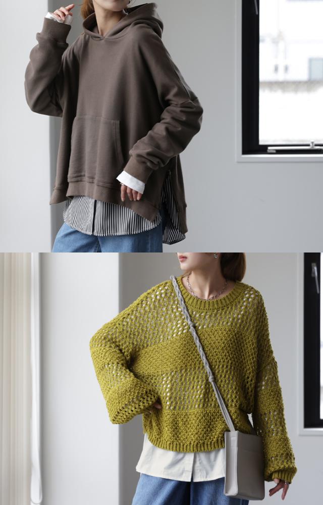 二ットやトレーナーなどとレイヤードすれば重ね着上手でこなれた印象になります。