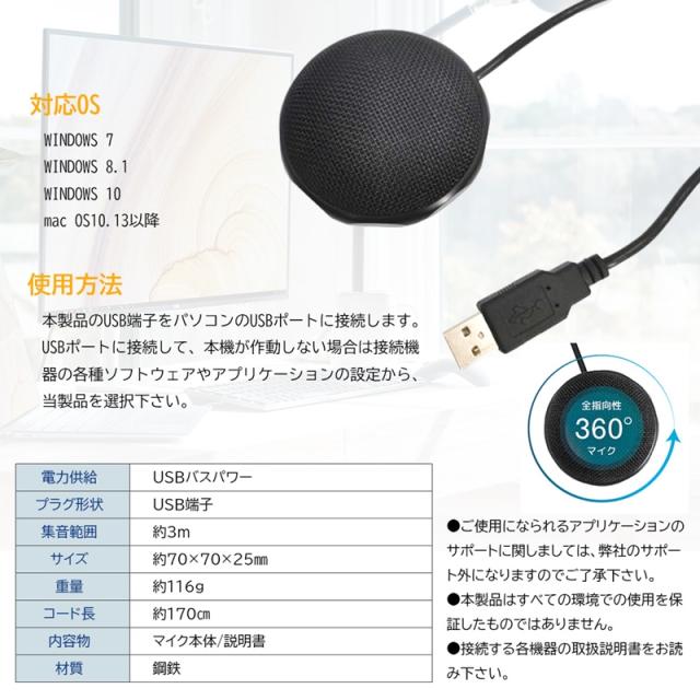 usbマイク 会議用 マイク パソコン 小型 USB接続 テレワーク ウェブ会議 zoom skype オンライン 在宅