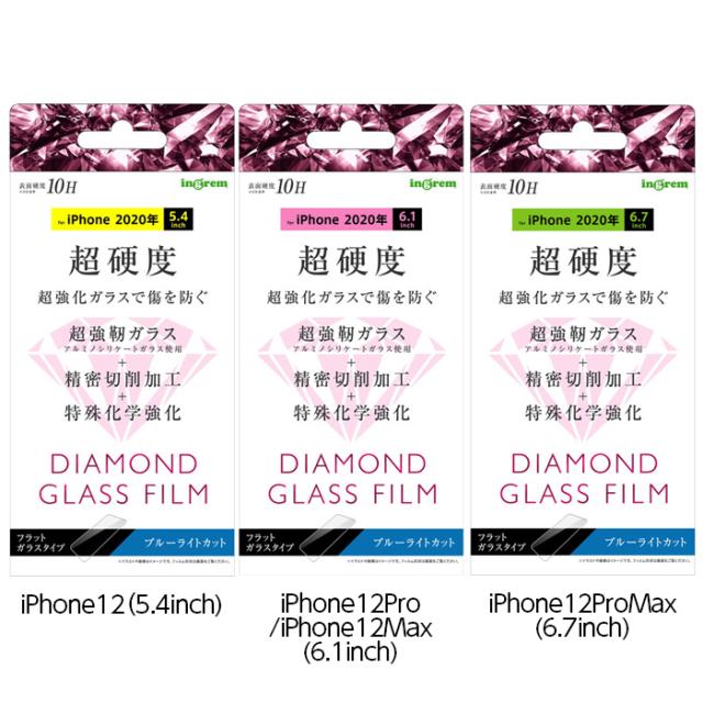 iPhone12 12pro 12mini 12ProMax ダイヤモンドガラスフィルム 10H アルミノシリケート ブルーライトカット フィルム 強化 ガラス ガラスフィルム 保護フィルム