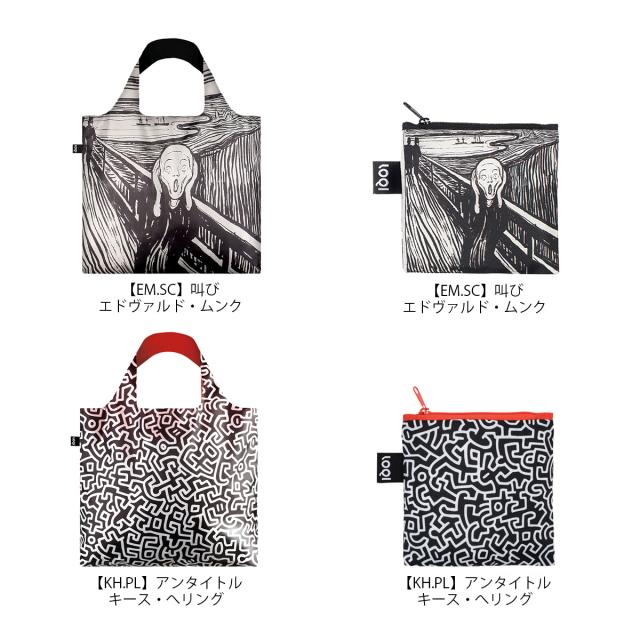 Tote Me DailyがコンセプトであるLOQI(ローキー)のエコバッグ、Museum Collection。コンパクトに持ち運べるパッカブル仕様。収納に便利なポーチも付いています。デザインも豊富で個性的。誰もが知ってる美術家たちの作品がプリントされています。