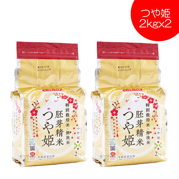 新米 2025年度産 令和7年度産 無洗米 つや姫 胚芽精米 2kgx2 送料無料 山形県産 特別栽培米 冬眠密着包装 真空パック 東北食糧
