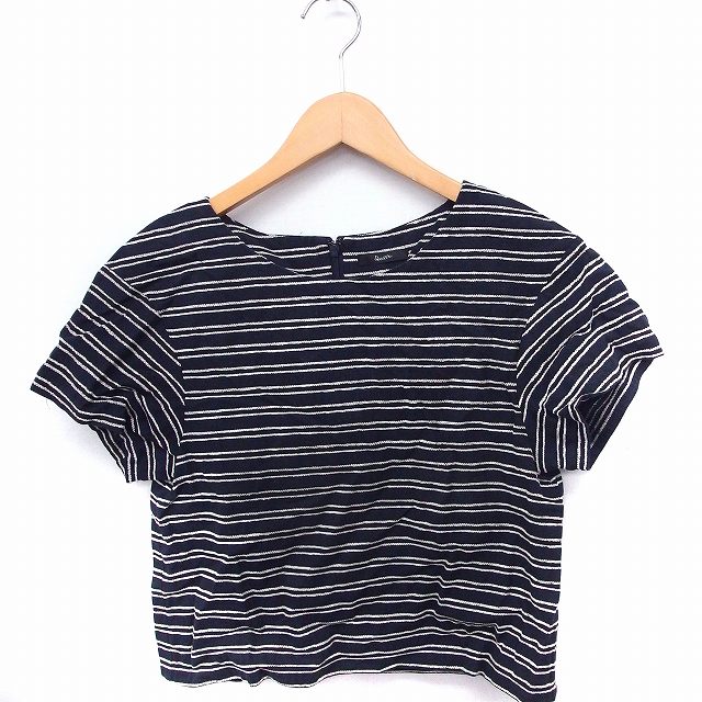 【中古】ロッソ ROSSO アーバンリサーチ シャツ ブラウス ボーダー 丸首 半袖 コットン 綿 F 紺 /FT34 レディース