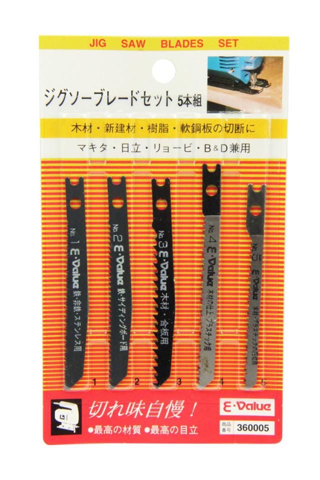 | No.1鉄工用ジグソーブレード 、No.2鉄工用ジグソーブレード 、No.3木工用ジグソーブレード、No.4木工仕上用ジグソーブレード、No.5木工円切ジグソーブレード |
