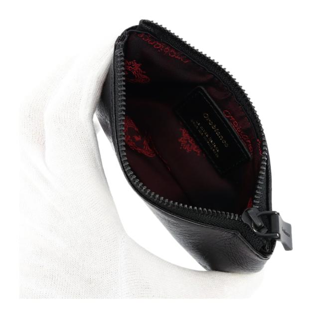 ブラックに染め上げたALL BLACKシリーズ。ライニング地は、縦糸にブラックを掛け横糸は赤糸で織りあげた新色のジャガードを使用。地生のキップ素材を使用し規則性のないシボ型押しに凹凸の艶を出したワイルドな表情が特徴の商品群です。