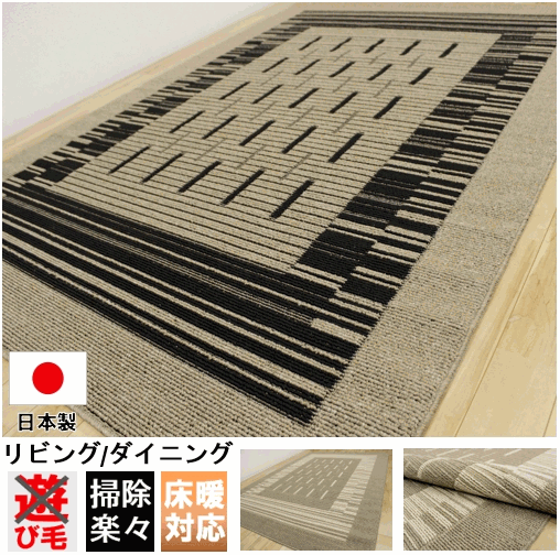 国産 ダイニング カーペット 絨毯 約 3畳 160x220cm モダン デザインラグ 抗菌 OSM 【ローマ160×220】 ホットカーペット対応