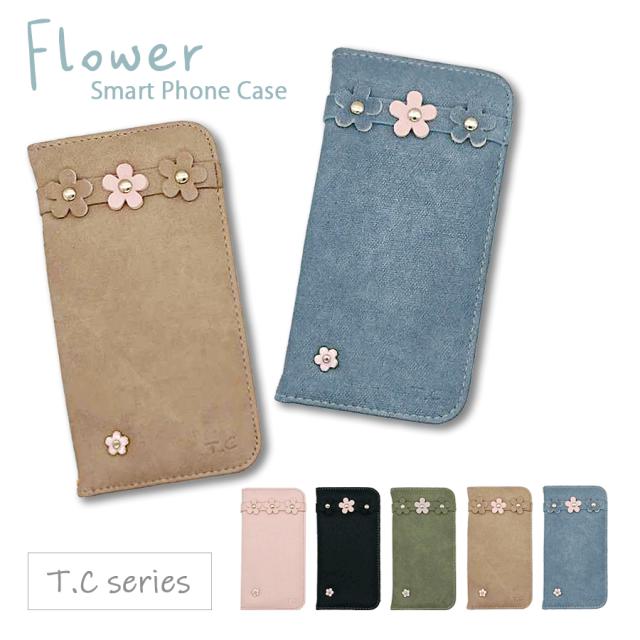 AQUOS sense/Android One S3 SH-01K アクオスセンス/アンドロイドワンS3 SHV40 手帳型 ケース ベルトなし レザー 花 花柄 フラワー キャンバス風型押し おしゃれ かわいい スマホ カバー T.C