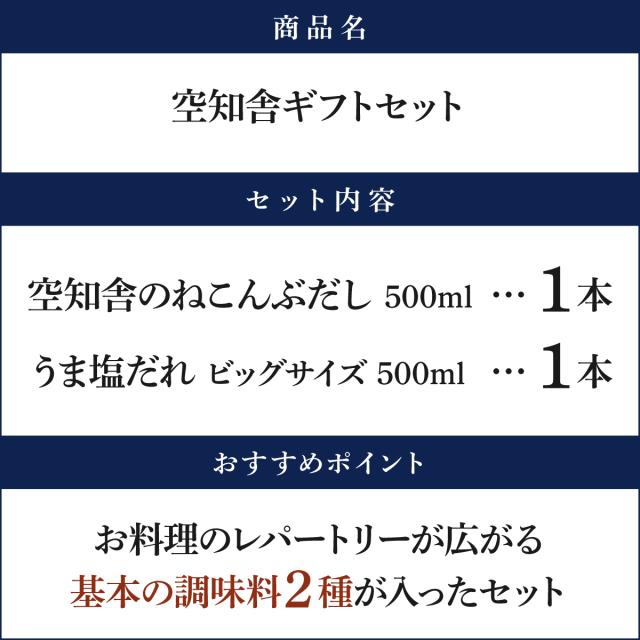 ギフト 調味料 空知舎ギフトセット(うま塩だれビッグサイズ500ml/ねこんぶだし500ml) のし・ギフト対応可【12/23(火)9時まで レビューを書いてポイント+3%】