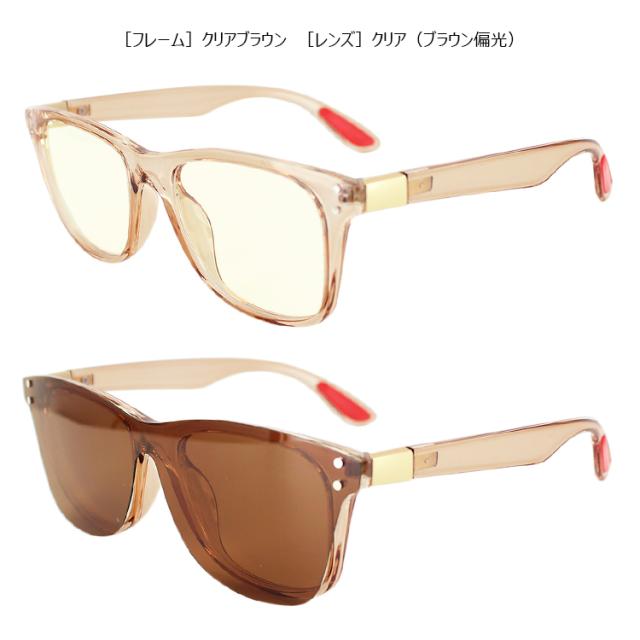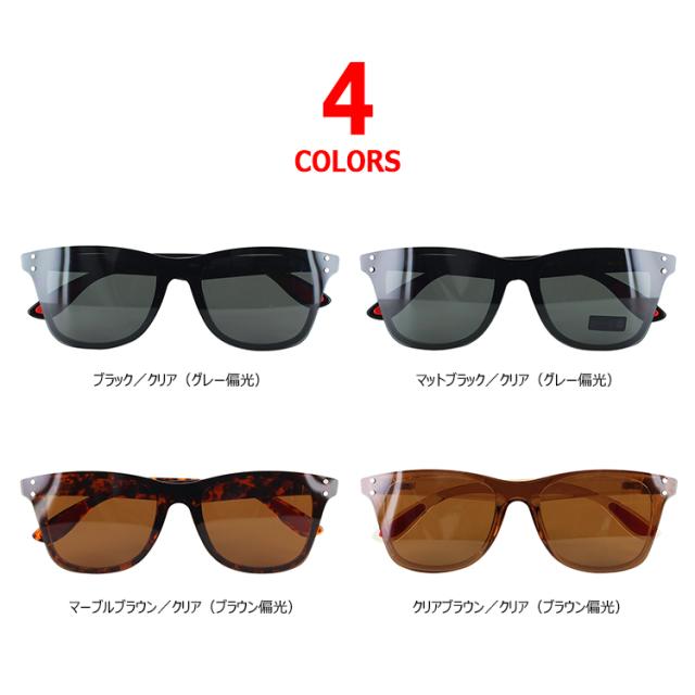 | ブラック/クリア(グレー偏光) マットブラック/クリア(グレー偏光) マーブルブラウン/クリア(ブラウン偏光) クリアブラウン/ クリア(ブラウン偏光) | フレーム:プラスチック(TR90) テンプル:プラスチック(TR90) レンズ:プラスチック偏光 |