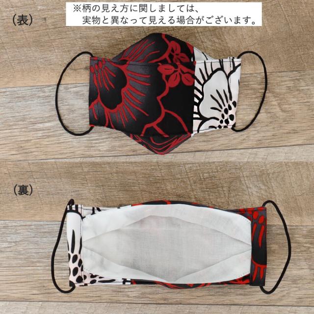 布マスク 大人マスク 舟形 大臣マスク 浴衣 牡丹 赤 黒 白 花柄 和柄 日本製 綿 送料無料 メール便2ポイント