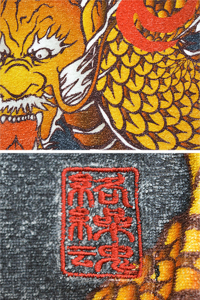 絵柄はプリント、裾のブランドロゴにのみ刺繍を用いています。