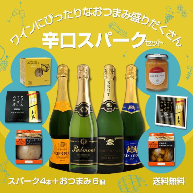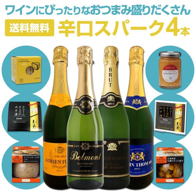 【送料無料】ワインにぴったりなおつまみ盛りだくさん!辛口スパークリングワイン4本セット!