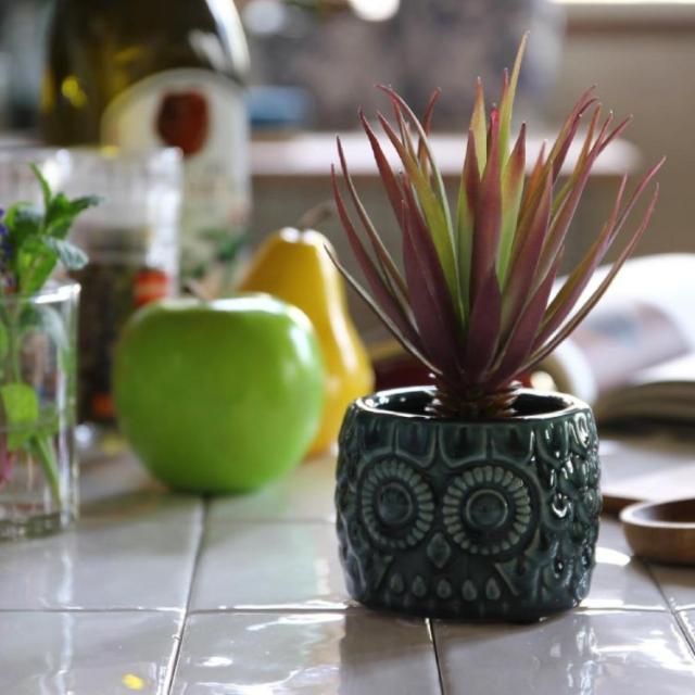 イミテーションのエアプランツが植え込んであり、そのまま飾れるギフトとしてもオススメです。