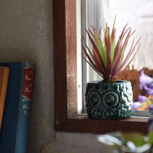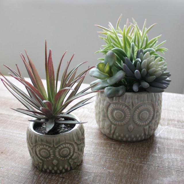 幸運をもたらしてくれそうな愛嬌のあるフクロウポット。