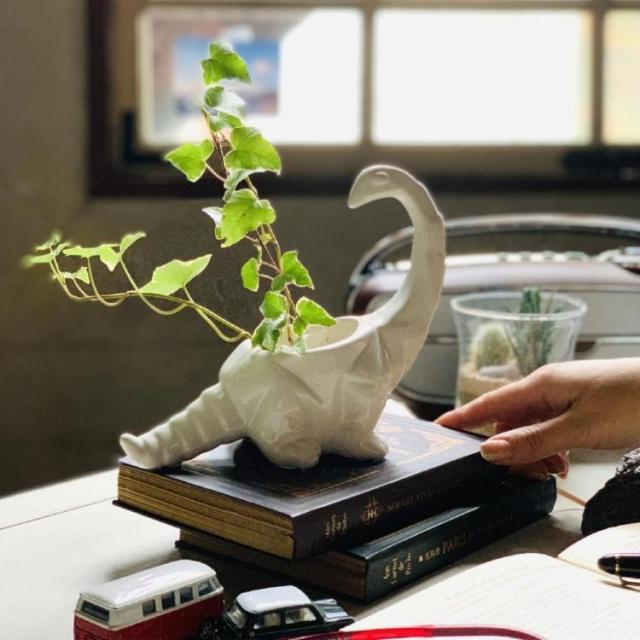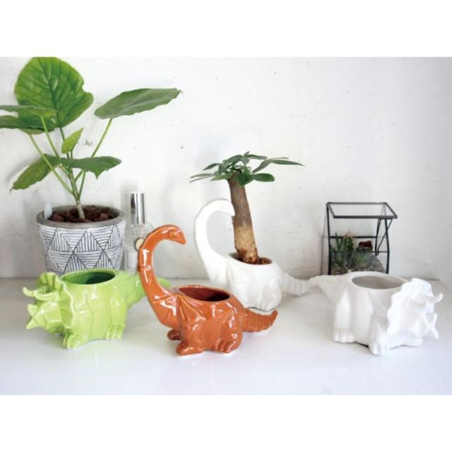 草食恐竜の背中で育てる、豊かな緑多肉植物にサボテン、エアプランツなどの植物がよく似合うポットです。