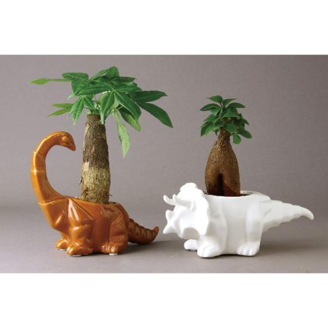 草食恐竜の背中で育てる、豊かな緑多肉植物にサボテン、エアプランツなどの植物がよく似合うポットです。