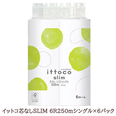 ●イトマン イットコ芯なし SLIM 6ロール 250m シングル ×6パック トイレットペーパー (10250010) 送料無料 70209