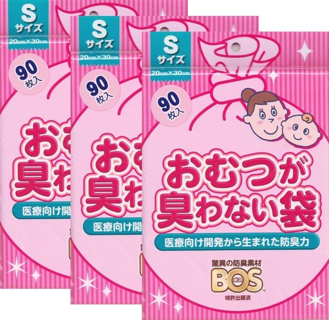 【メール便利用!送料込み】クリロン化成 おむつが臭わない袋BOSベビー用Sサイズ90枚入X3セット