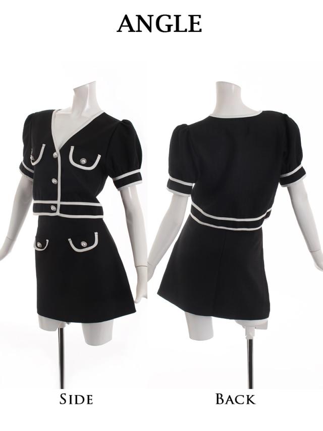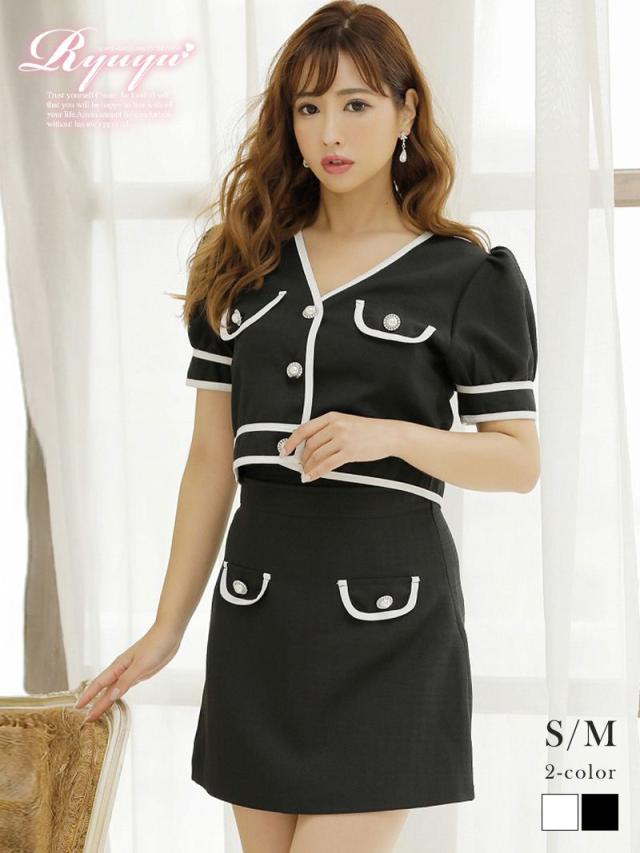 ☆ノーカラージャケットがお顔周りをスッキリ見せるスカートセットアップスーツはどんなアクセでも合わせやすい2pキャバクラスーツ♪
