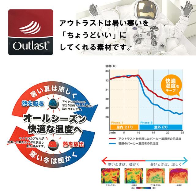 NASAのために開発された温度調節機能 アウトラスト生地使用