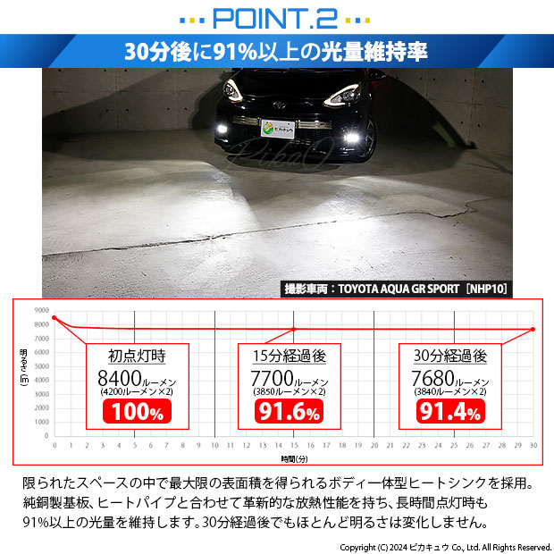 ※ルーメン値は、バルブ2個(車両一台分)の値を示しています。