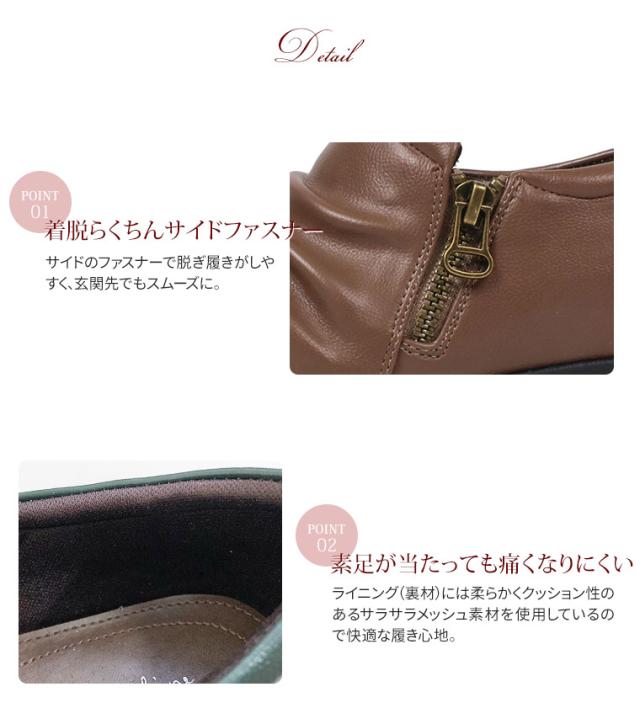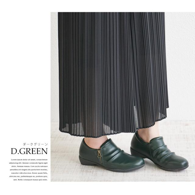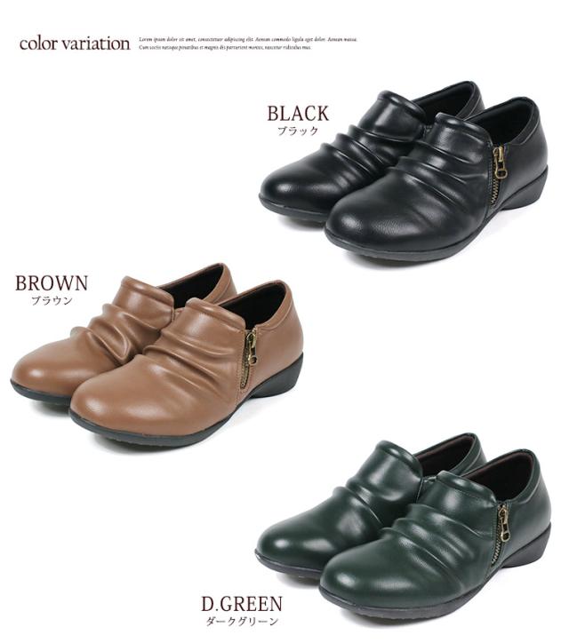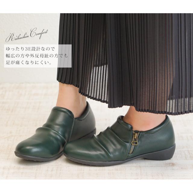 コンフォートシューズ レディース おしゃれ 幅広 3e 履きやすい サイドファスナー カジュアルシューズ レディース 外反母趾 痛くない 疲れにくい 軽量 母の日 ギフト 誕生日 プレゼント シニア 敬老の日 黒 ブラック 緑 グリーン ブラウン 556-43 送料無料