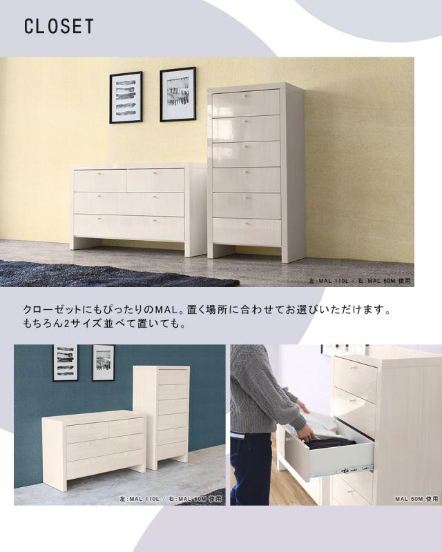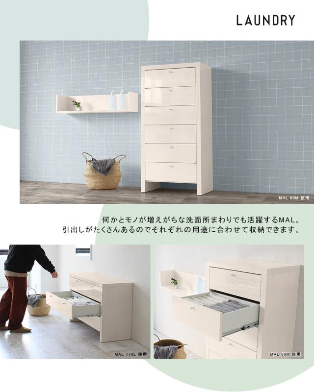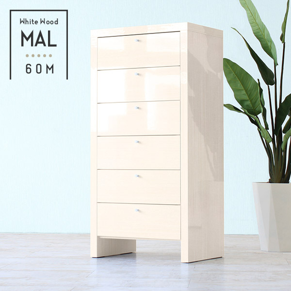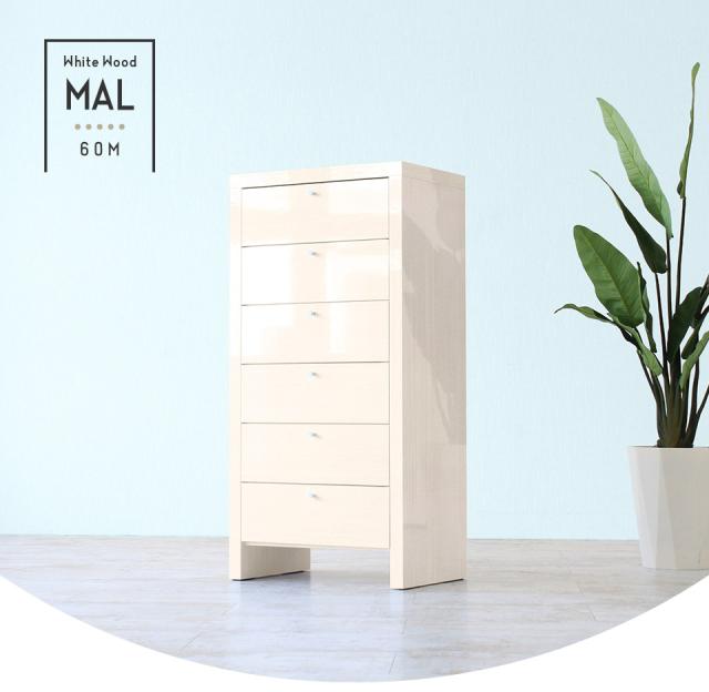 チェスト タンス ホワイト たんす 衣類タンス ランドリー収納 シンプル 引出し 鏡面 リビング収納 クローゼット収納 衣類収納 箪笥 引き出し おしゃれ リビングチェスト オシャレ リビング収納 家具 収納 日本製 完成品 幅60cm リビング クローゼット 白 whitewood MAL60M ☆