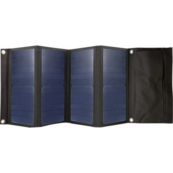 ●折り畳みが可能な単結晶シリコンソーラーパネルを採用。最大出力約28W(理論値)。