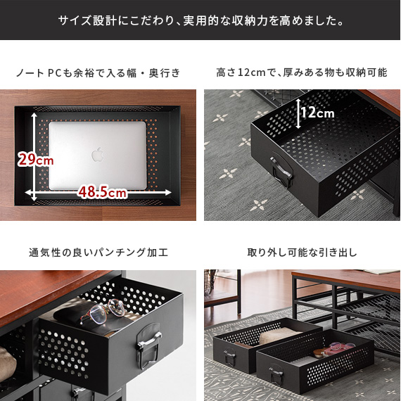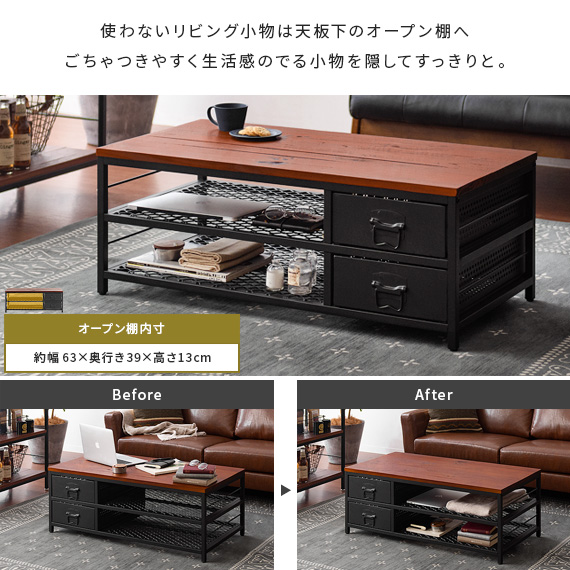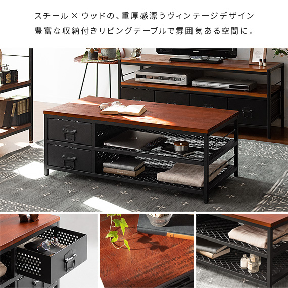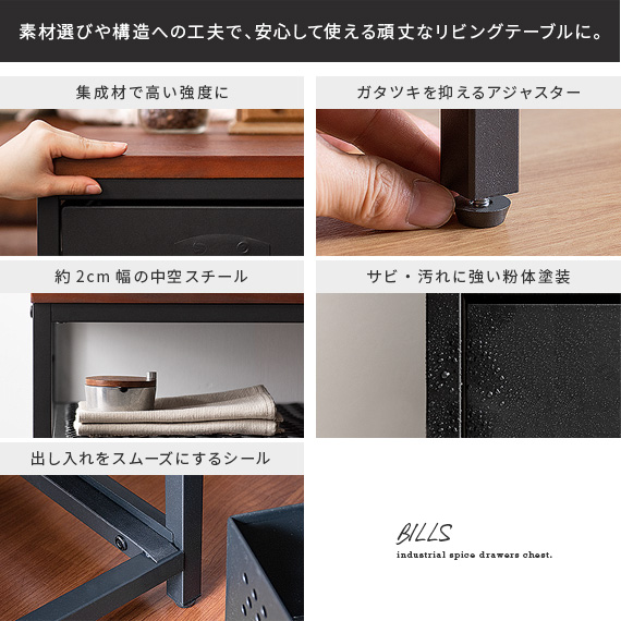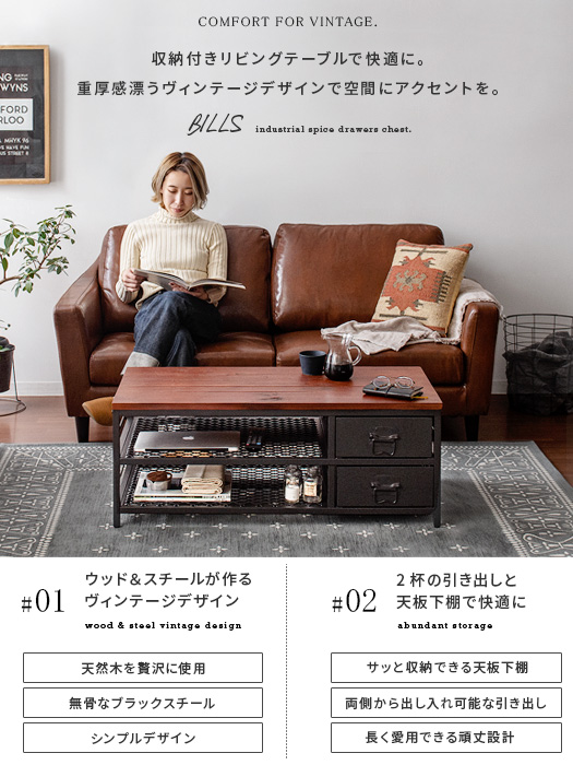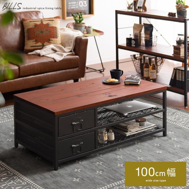 テーブル ローテーブル センターテーブル リビングテーブル 引き出し カフェ 北欧 西海岸 木製 ヴィンテージ table おしゃれ 無垢 アイアン レトロ モダン カフェテーブル ミッドセンチュリー ブルックリン ヴィンテージリビングテーブル BILLS(ビルズ)