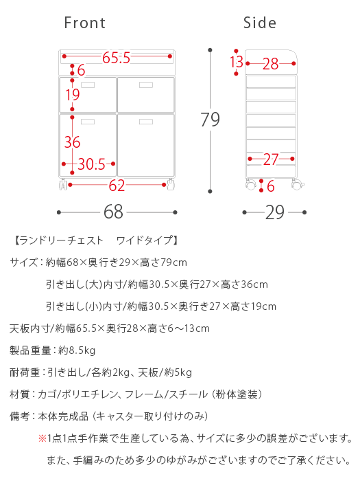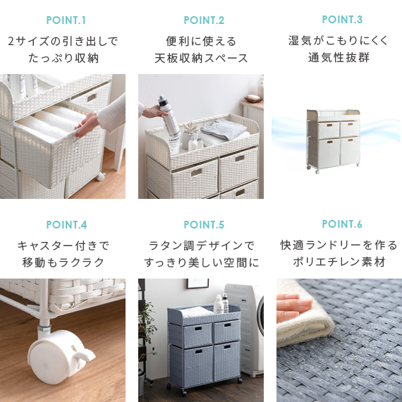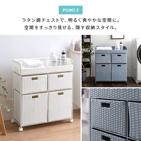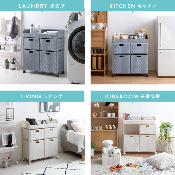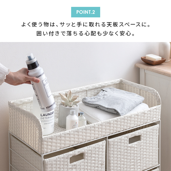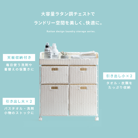 ランドリーチェスト チェスト ワイドチェスト 洗面所 脱衣所 収納 キャスター ラタン 籐 ワイヤー おしゃれ ランドリーワゴン ランドリー収納 かわいい シンプル 北欧 ナチュラル ランドリーチェスト Diario(ディアリオ) 2段ワイドタイプ