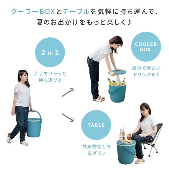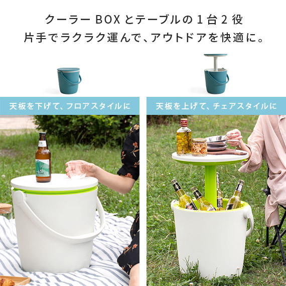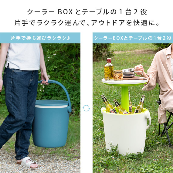 クーラーボックス テーブル サイドテーブル 保冷 クーラー アウトドア キャンプ BBQ ガーデン バスケット バケツ Keter(ケター) クーラーボックス&テーブル Go Bar(ゴーバー) オーシャンブルー×ホワイト ホワイト×グリーン