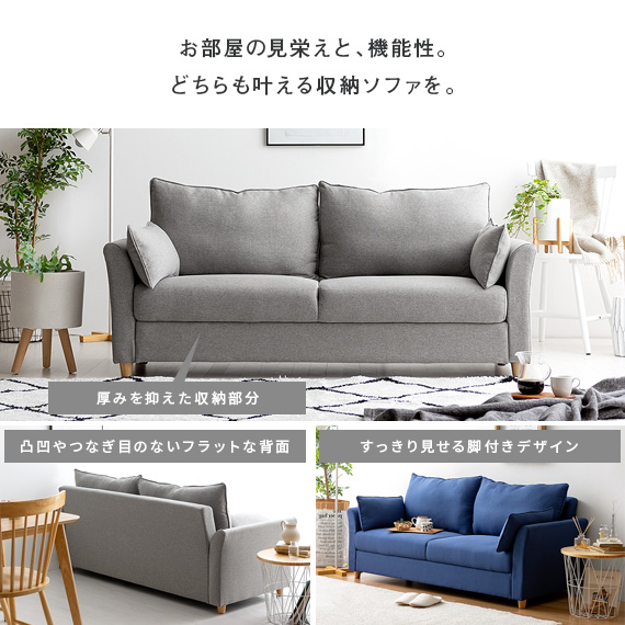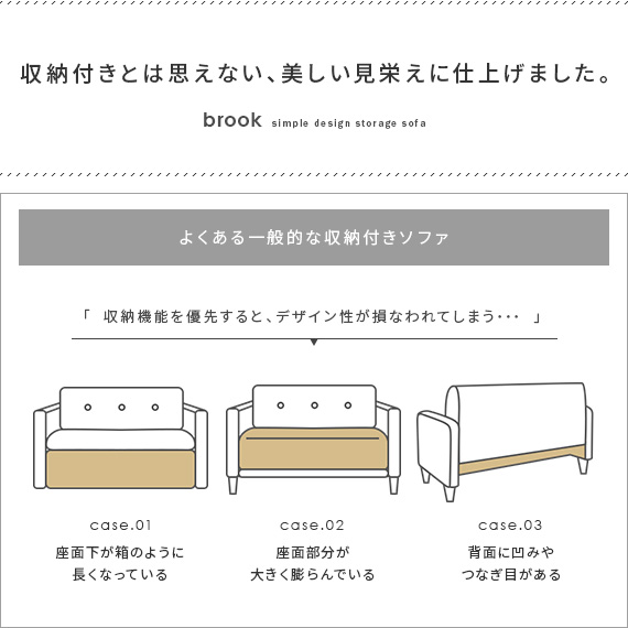 ソファ ソファー 2人掛け おしゃれ カウチソファ 2.5人掛け 収納付き ローソファー 一人暮らし 収納付きソファー 北欧 シンプル モダン かわいい おすすめ 収納付きソファ brook(ブルック)
