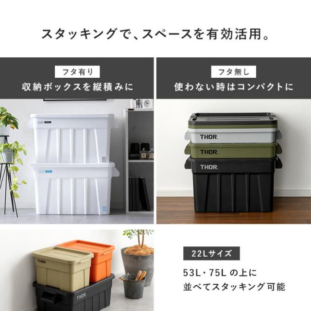 22L 収納ボックス コンテナ コンテナボックス フタ付き boxコンテナ プラスチック アウトドア ベランダ 屋外 屋内 スタッキング 積み重ね ふた付き おしゃれ かっこいい