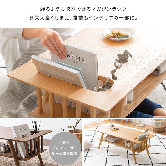テーブル ローテーブル リビングテーブル 北欧 脚 木製 センターテーブル ウォールナット カフェ風 モダン 収納 シンプル モダン カフェ 西海岸 ブルックリン おしゃれ 家具 木製テーブル マガジンラック ブックスタンド 棚付きセンターテーブル SOT(ソット)