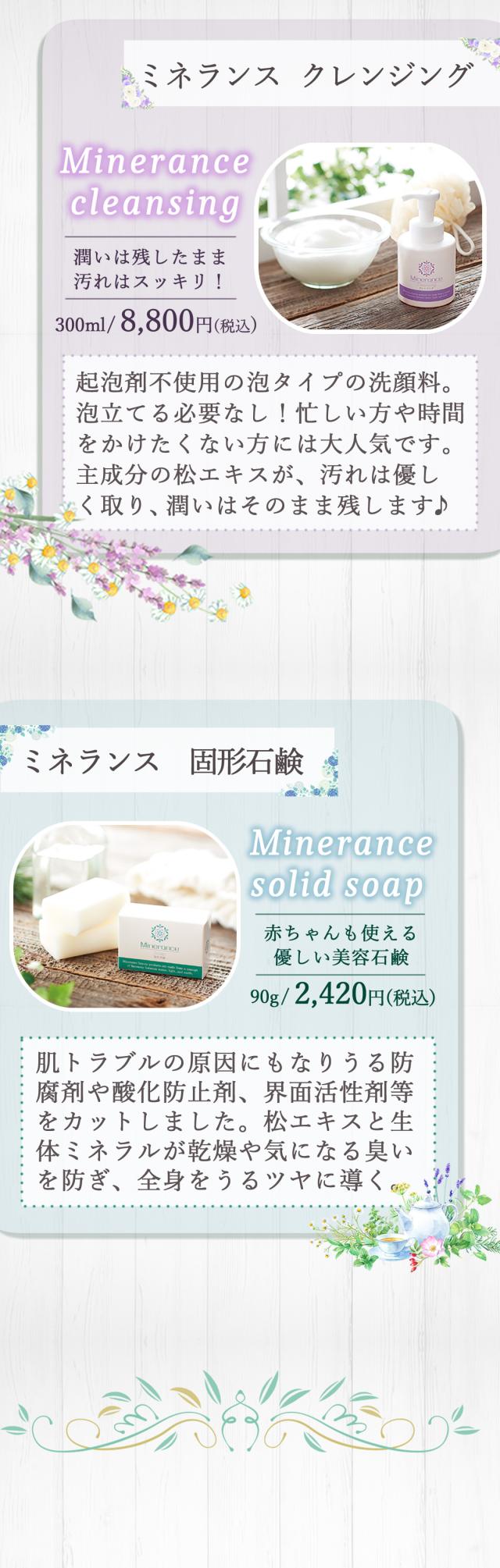 無添加にこだわり、使えば使うほど、お肌と地球を綺麗にする「生体ミネラル活性液」と、美容効果&体臭が気にならなくなる「松エキス」配合の化粧品です。