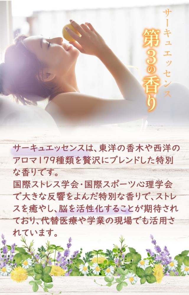 「サーキュエッセンス」とは“東洋の香木”や“西洋のアロマ179種類”を贅沢にブレンドした、今までにはない第3の香りです