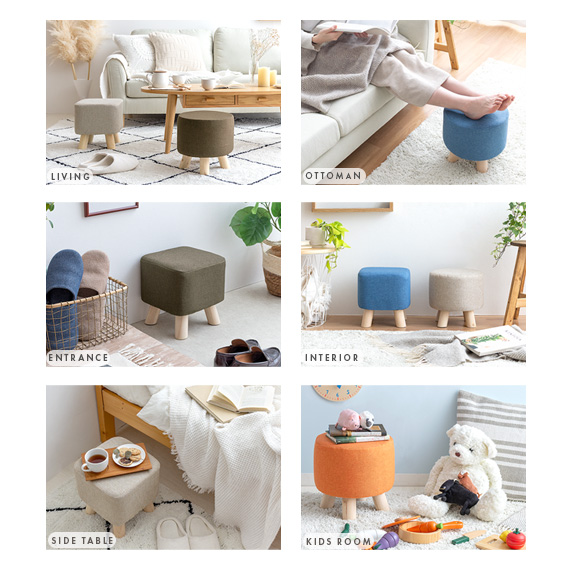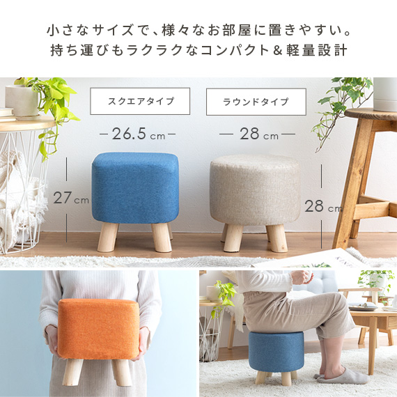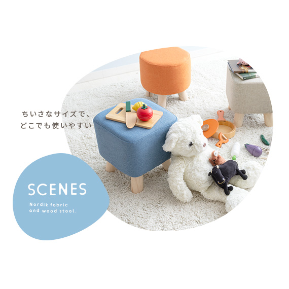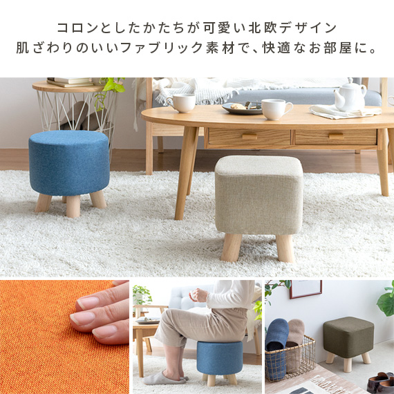 スツール おしゃれ 木製 椅子 ウッド 丸 四角 イス 椅子 チェア コンパクト かわいい 北欧 シンプル ナチュラル レトロ ポップ カフェ風 リビング 玄関 子供部屋 ファブリック 布製 ファブリックスツール miru(ミル)