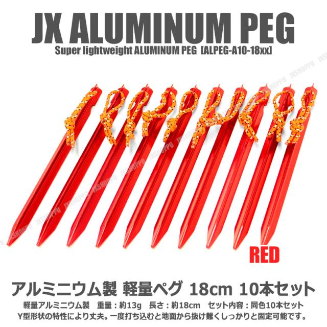 Y型 テント ペグ 18cm [ レッド ] 10本セット 軽量 ジュラルミン製 アルミニウム アルマイト 紐付属 アウトドア キャンプ用品 送料無料 Y型 金属製 テントペグ SET 10本 Y字 打ち込む ロープ 固定 レジャー 定番 グッズ 道具 棒 便利 キャンプ アルミ かわいい フック 防災