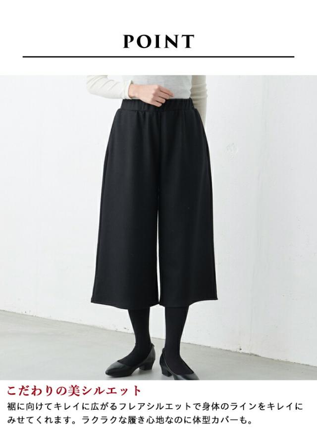 圧縮ウール100% ガウチョパンツ 日本製 / ガウチョパンツ 秋冬 七分丈 レディース 大きいサイズ 40代 50代 60代 女性 ファッション 膝下 無地 ウール フレアパンツ カジュアル フォーマル 大きいサイズ ウエストゴム 春 冬 秋 ボトム 暖かい