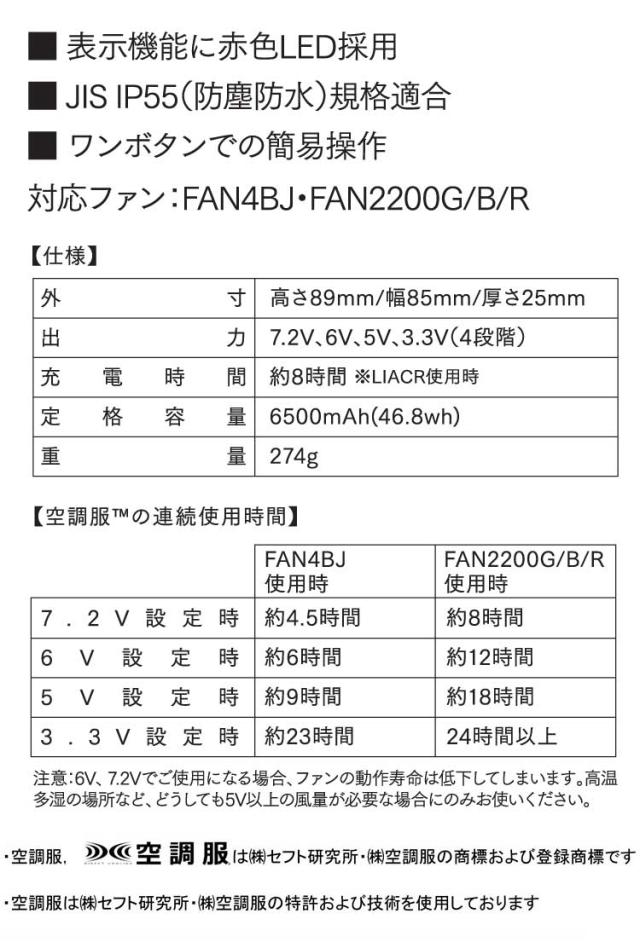 空調服 大風量パワーファン対応バッテリーセット LISUPERJ 株式会社空調服