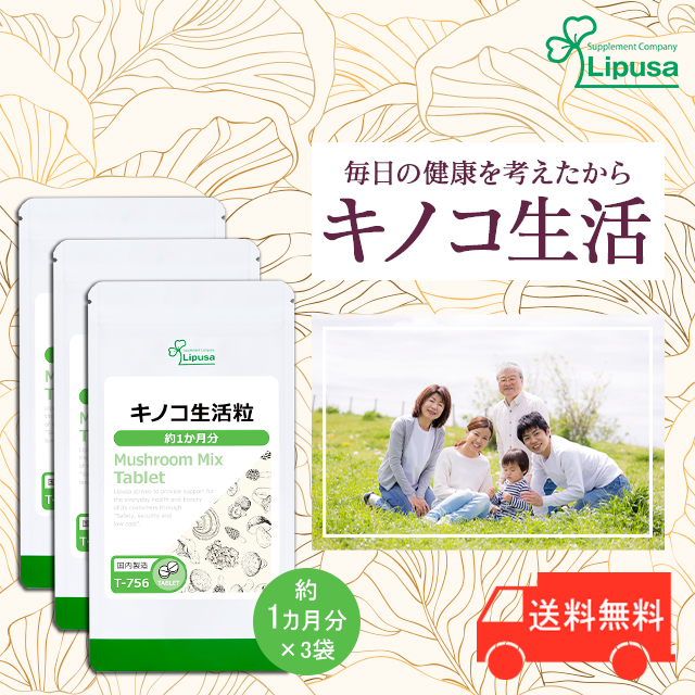 キノコ生活粒 約1か月分×3袋 T-756-3 (180粒×3袋) 送料無料 健康 サプリ リプサ Lipusa 公式 agesugi_sbe