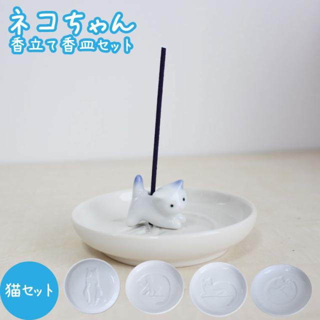 香立て香皿セット 有田焼 ネコちゃん 線香立て ペット供養 ペット供養 犬 猫 手元供養 香立て