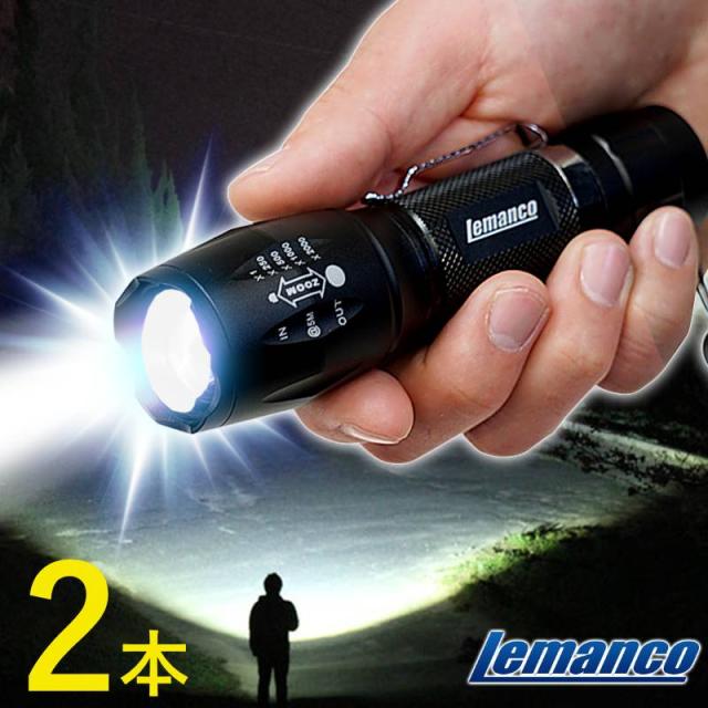 【 2本セット 】ハンドライト ハンディライト フラッシュライト 防災 防水 懐中電灯 LEDライト 強力 超強力 XM-L T6 小型 携帯 明るい 送料無料