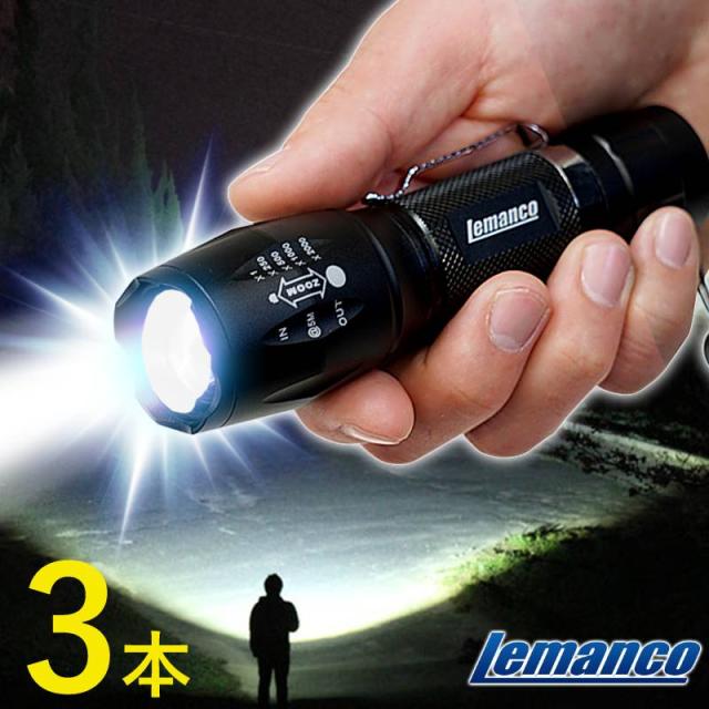 【 3本セット 】ハンドライト ハンディライト フラッシュライト 防災 防水 懐中電灯 LEDライト 強力 超強力 XM-L T6 小型 携帯 明るい 送料無料