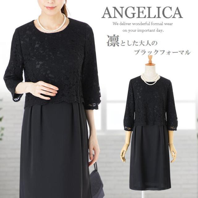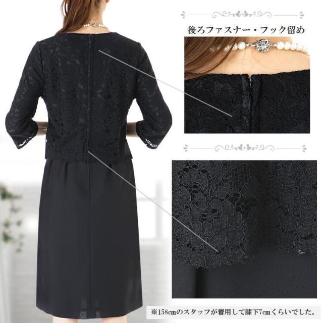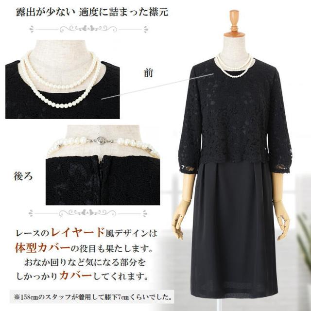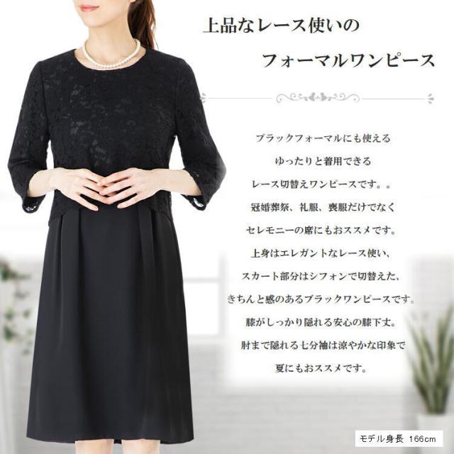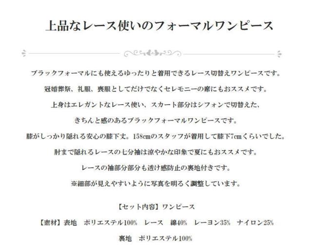 ブラックフォーマルにも使えるゆったりと着用できるレース切替えワンピースです。
