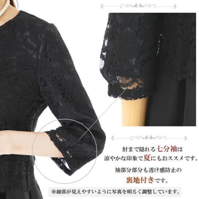 肘まで隠れるレースの七分袖は涼やかな印象で夏にもおススメです。